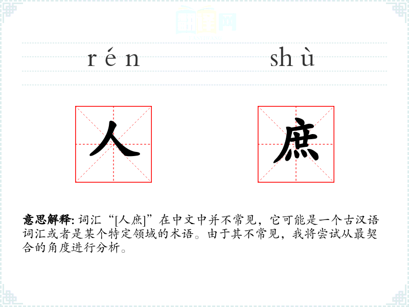 词汇“[人庶]”在中文中并不常见,它可能是一个古汉语词汇或者是某个特定领域的术语。由于其不常见,我将尝试从最契合的角度进行分析。