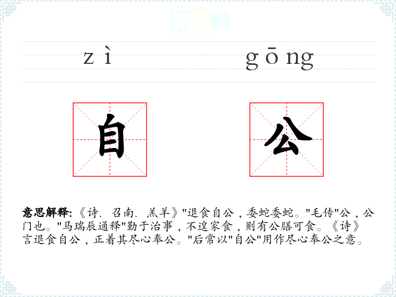 ﹐正着其尽心奉公。"后常以"自公"用作尽心奉公之意。