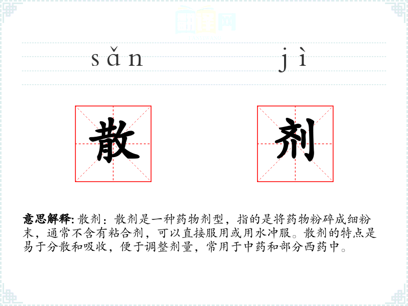 "散剂"的意思解释、散剂是什么意思由翻译网汉语词典查词提供。