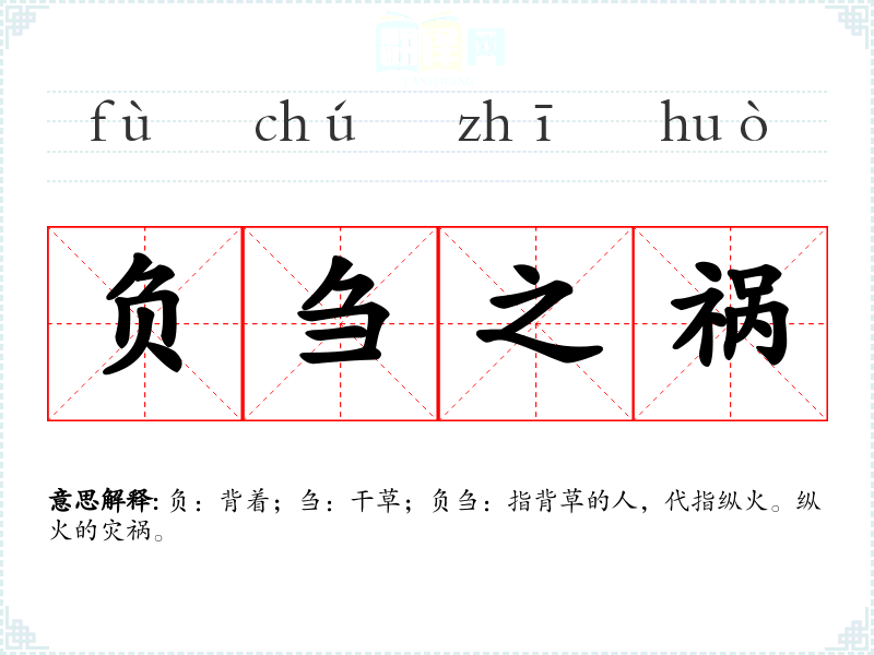 负:背着;刍:干草;负刍:指背草的人,代指纵火。纵火的灾祸。