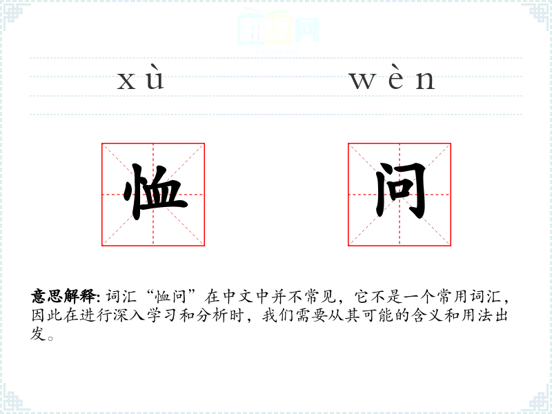 词汇“恤问”在中文中并不常见,它不是一个常用词汇,因此在进行深入学习和分析时,我们需要从其可能的含义和用法出发。