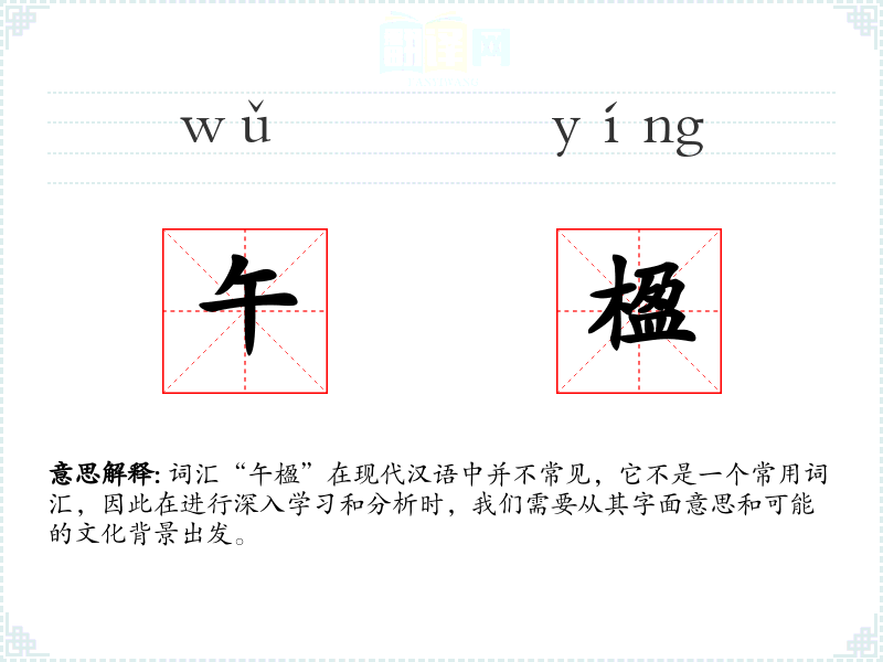 词汇“午楹”在现代汉语中并不常见,它不是一个常用词汇,因此在进行深入学*和分析时,我们需要从其字面意思和可能的文化背景出发。