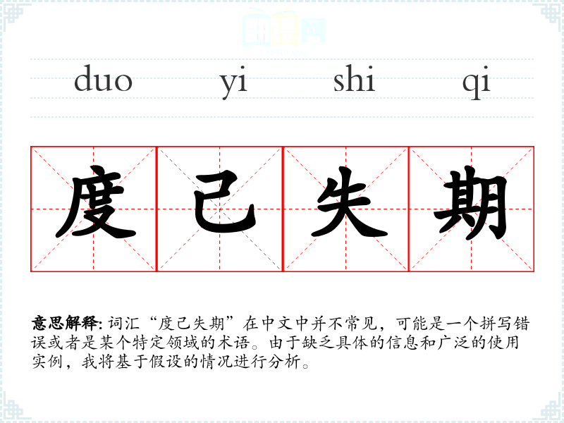 词汇“度己失期”在中文中并不常见,可能是一个拼写错误或者是某个特定领域的术语。由于缺乏具体的信息和广泛的使用实例,我将基于假设的情况进行分析。