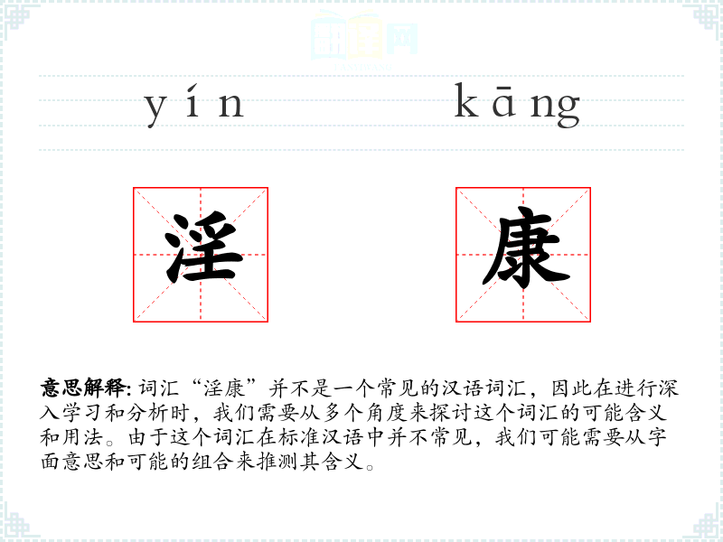 词汇“淫康”并不是一个常见的汉语词汇,因此在进行深入学习和分析时,我们需要从多个角度来探讨这个词汇的可能含义和用法。由于这个词汇在标准汉语中并不常见,我们可能需要从字面意思和可能的组合来推测其含义。