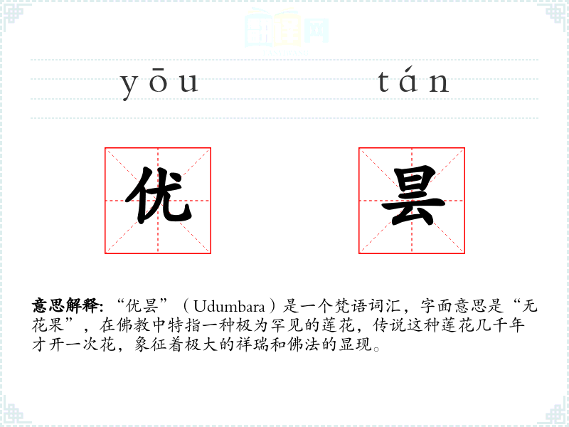 “优昙”(Udumbara)是一个梵语词汇,字面意思是“无花果”,在**中特指一种极为罕见的莲花,传说这种莲花几千年才开一次花,象征着极大的祥瑞和佛法的显现。