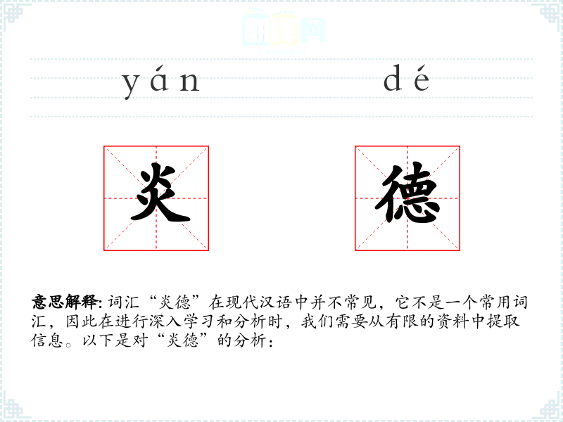 词汇“炎德”在现代汉语中并不常见,它不是一个常用词汇,因此在进行深入学习和分析时,我们需要从有限的资料中提取信息。以下是对“炎德”的分析: