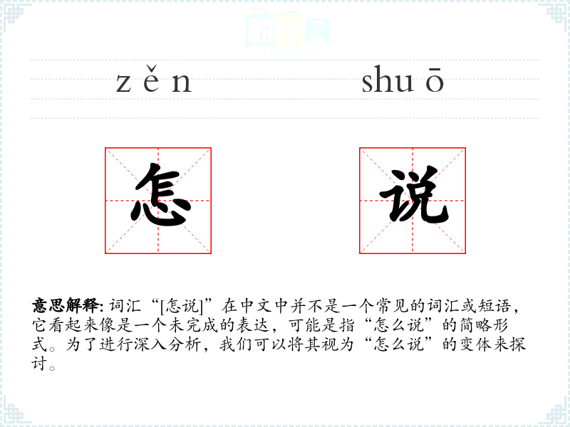 词汇“[怎说]”在中文中并不是一个常见的词汇或短语,它看起来像是一个未完成的表达,可能是指“怎么说”的简略形式。为了进行深入分析,我们可以将其视为“怎么说”的变体来探讨。
