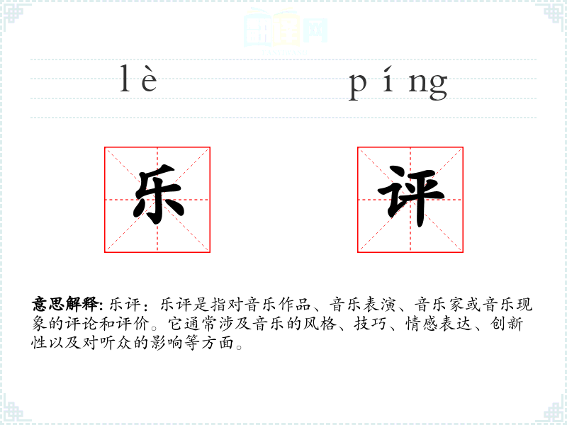 - 反义词:音乐赞美、音乐推荐(这些词汇更多是积极的评价,而乐评可能包含正面和负面的评价)