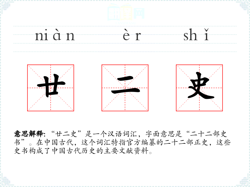 “廿二史”不仅是*古代历史的官方记录,也是中华文化的重要组成部分。通过对这个词汇的学,我更加深刻地认识到历史文献在文化传承中的重要作用。