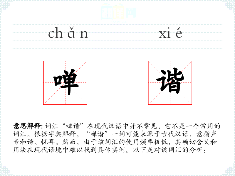 在日常生活中,很少有机会使用或遇到“啴谐”这个词汇。