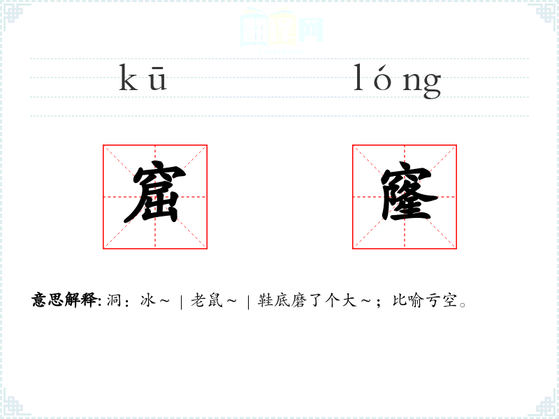 窟窿的窿怎么写