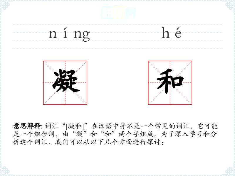 词汇“[凝和]”在汉语中并不是一个常见的词汇,它可能是一个组合词,由“凝”和“和”两个字组成。为了深入学习和分析这个词汇,我们可以从以下几个方面进行探讨: