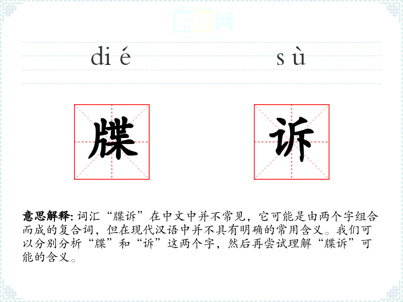 词汇“牒诉”在中文中并不常见,它可能是由两个字组合而成的复合词,但在现代汉语中并不具有明确的常用含义。我们可以分别分析“牒”和“诉”这两个字,然后再尝试理解“牒诉”可能的含义。