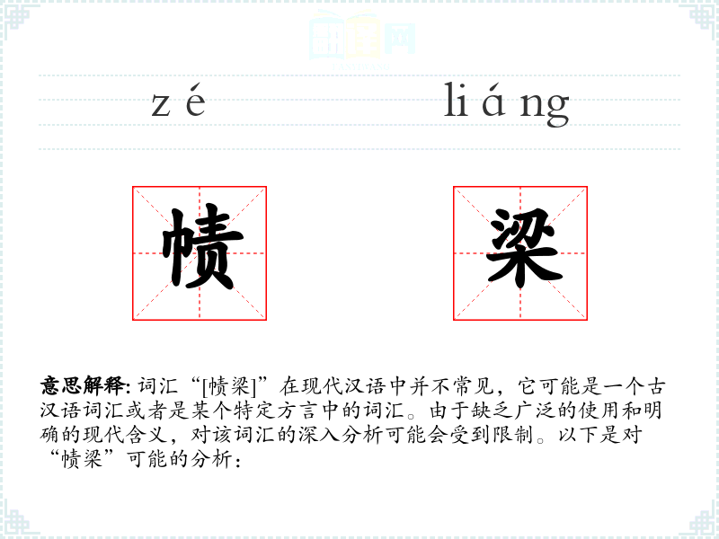 词汇“[帻梁]”在现代汉语中并不常见,它可能是一个古汉语词汇或者是某个特定方言中的词汇。由于缺乏广泛的使用和明确的现代含义,对该词汇的深入分析可能会受到限制。以下是对“帻梁”可能的分析:
