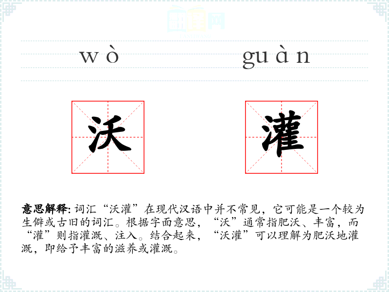 “沃灌”字面意思是指肥沃地灌溉,引申为给予丰富的滋养或支持。