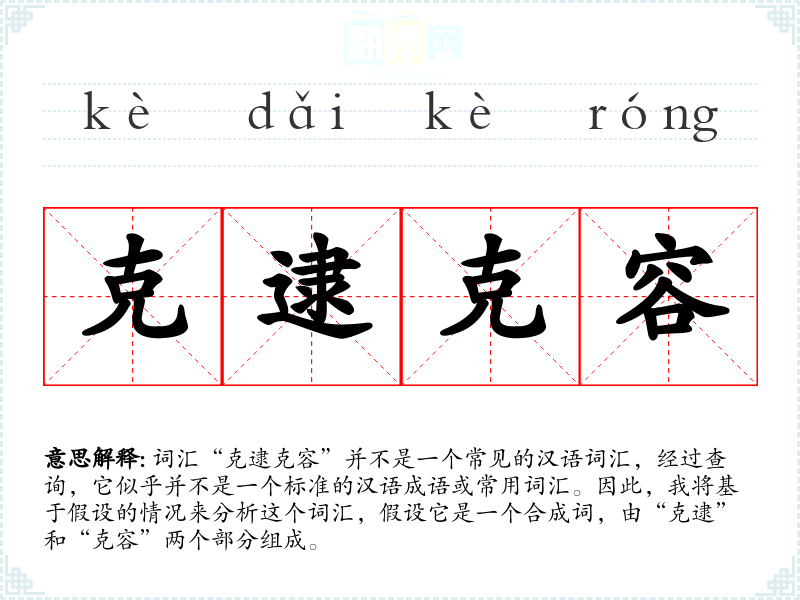 词汇“克逮克容”并不是一个常见的汉语词汇,经过查询,它似乎并不是一个标准的汉语成语或常用词汇。因此,我将基于假设的情况来分析这个词汇,假设它是一个合成词,由“克逮”和“克容”两个部分组成。
