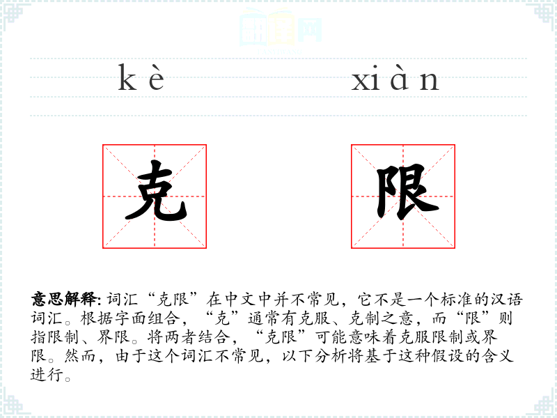 "克限"的意思解释、克限是什么意思由翻译网汉语词典查词提供。