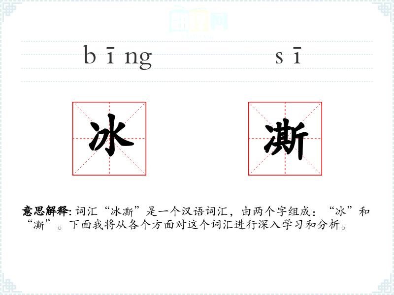 词汇“冰凘”是一个汉语词汇,由两个字组成:“冰”和“凘”。下面我将从各个方面对这个词汇进行深入学*和分析。