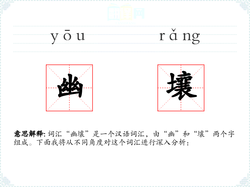 - 词源:“幽”和“壤”都是古代汉语词汇,组合后形成新的意义。