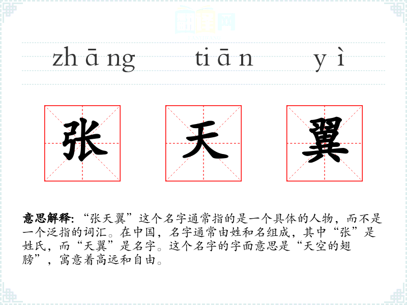 名字“张天翼”的词源来自于汉字“张”和“天翼”的组合。在**文化中,名字往往寄托了父母对孩子的期望和祝福。随着时间的推移,这个名字可能会在不同的家庭和文化中产生不同的联想和意义。