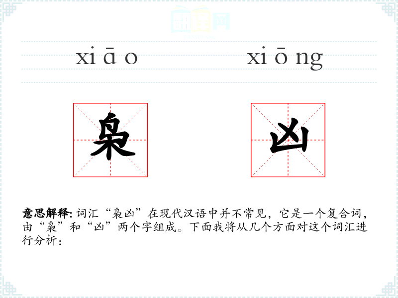 词汇“枭凶”在现代汉语中并不常见,它是一个复合词,由“枭”和“凶”两个字组成。下面我将从几个方面对这个词汇进行分析: