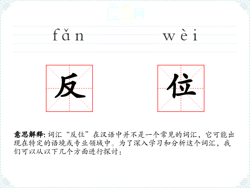 词汇“反位”在汉语中并不是一个常见的词汇,它可能出现在特定的语境或专业领域中。为了深入学习和分析这个词汇,我们可以从以下几个方面进行探讨: