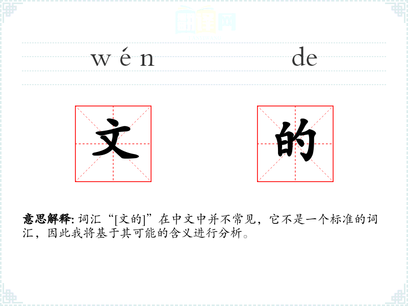 词汇“[文的]”在中文中并不常见,它不是一个标准的词汇,因此我将基于其可能的含义进行分析。