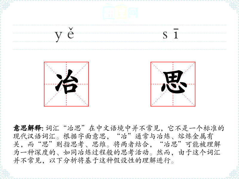 “冶思”可以被解释为一种深入、细致且有目的性的思考过程,类似于冶炼金属时需要精细的工艺和耐心。