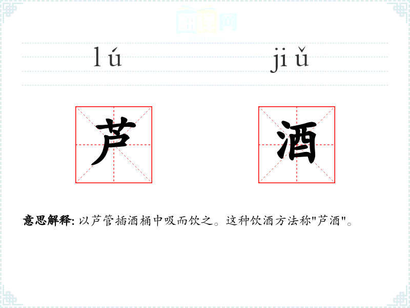 芦酒的分字解释
