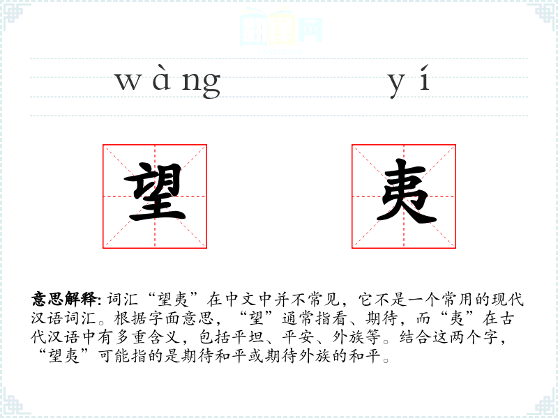- 词源:“望”和“夷”都是古代汉语词汇,组合起来形成一个复合词。