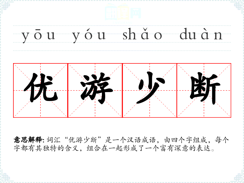 词汇“优游少断”是一个汉语成语,由四个字组成,每个字都有其独特的含义,组合在一起形成了一个富有深意的表达。