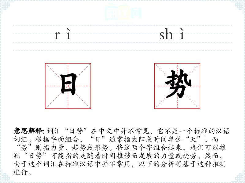 “日势”虽然不是一个常用词汇,但它提供了一种描述时间与趋势关系的独特方式。在理解和使用这个词汇时,需要注意其创造性和特定语境下的适用性。在语言学习和表达中,了解和掌握这样的词汇可以丰富表达方式,增强语言的多样性和深度。
