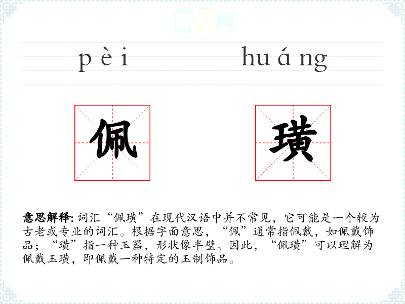 - 词源:“佩”和“璜”都是古代汉语词汇,源自古代的服饰文化。