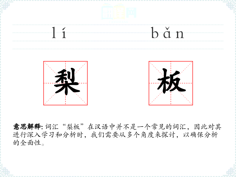 词汇“梨板”在汉语中并不是一个常见的词汇,因此对其进行深入学习和分析时,我们需要从多个角度来探讨,以确保分析的全面性。