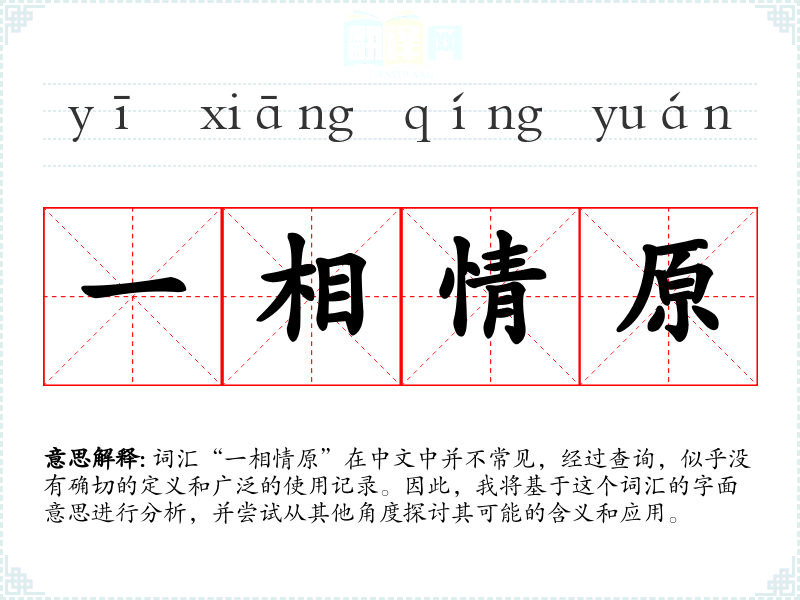 由于“一相情原”不是一个标准词汇,其词源和演变难以考证。可能是某个特定领域或个人创造的词汇。