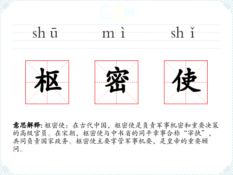 "枢密使"的意思解释、枢密使是什么意思由翻译网汉语词典查词提供。