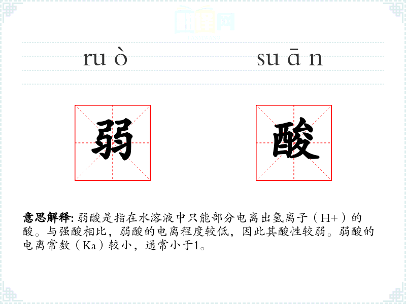 "弱酸"的意思解释、弱酸是什么意思由翻译网汉语词典查词提供。