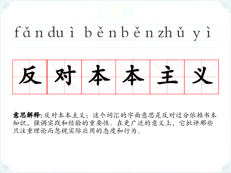 反对本本主义:这个词汇的字面意思是反对过分依赖书本知识,强调实践和经验的重要性。在更广泛的意义上,它批评那些只注重理论而忽视实际应用的态度和行为。