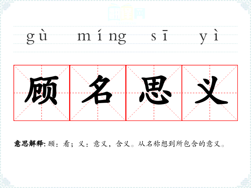 顾:看;义:意义,含义。从名称想到所包含的意义。