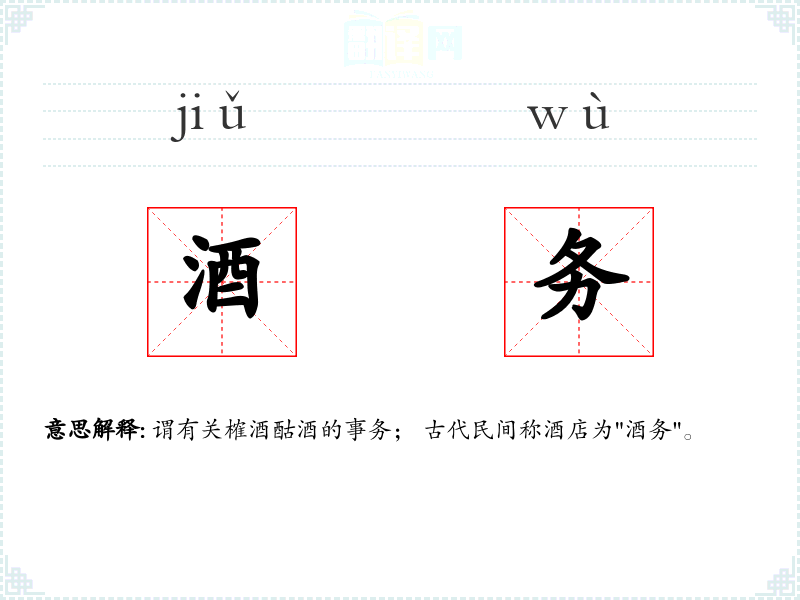 谓有关榷酒酤酒的事务; 古代民间称酒店为"酒务"。
