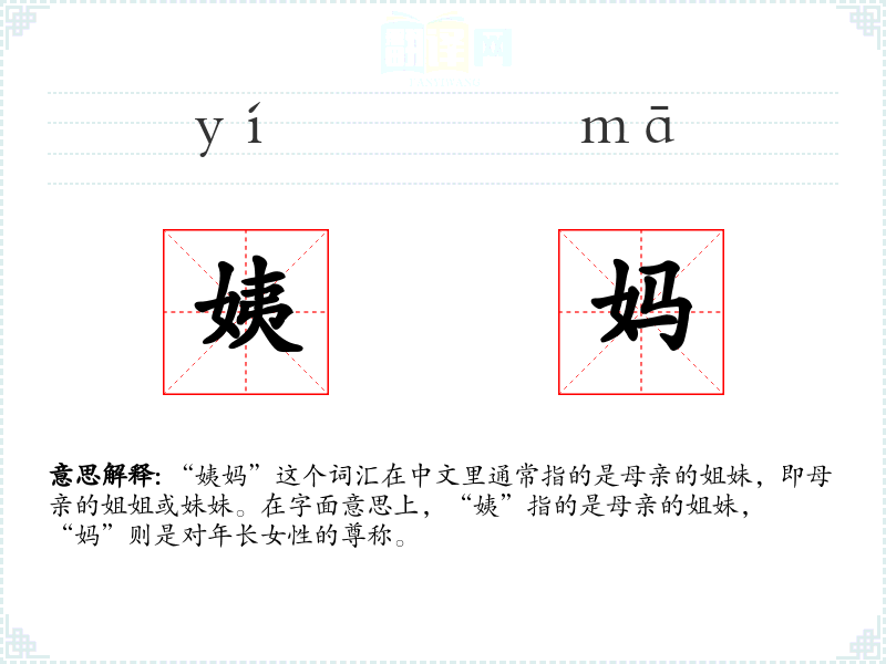 “姨妈”这个词汇在中文里通常指的是母亲的姐妹,即母亲的姐姐或妹妹。在字面意思上,“姨”指的是母亲的姐妹,“妈”则是对年长女性的尊称。