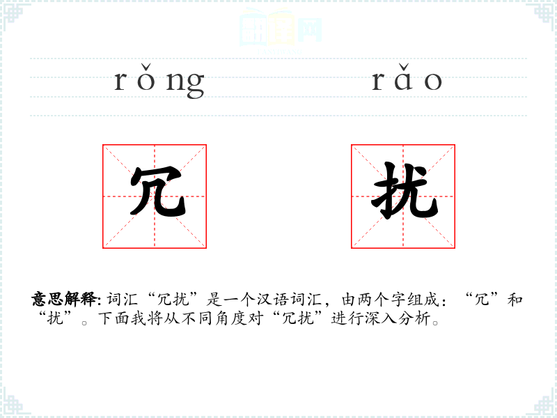 词汇“冗扰”是一个汉语词汇,由两个字组成:“冗”和“扰”。下面我将从不同角度对“冗扰”进行深入分析。