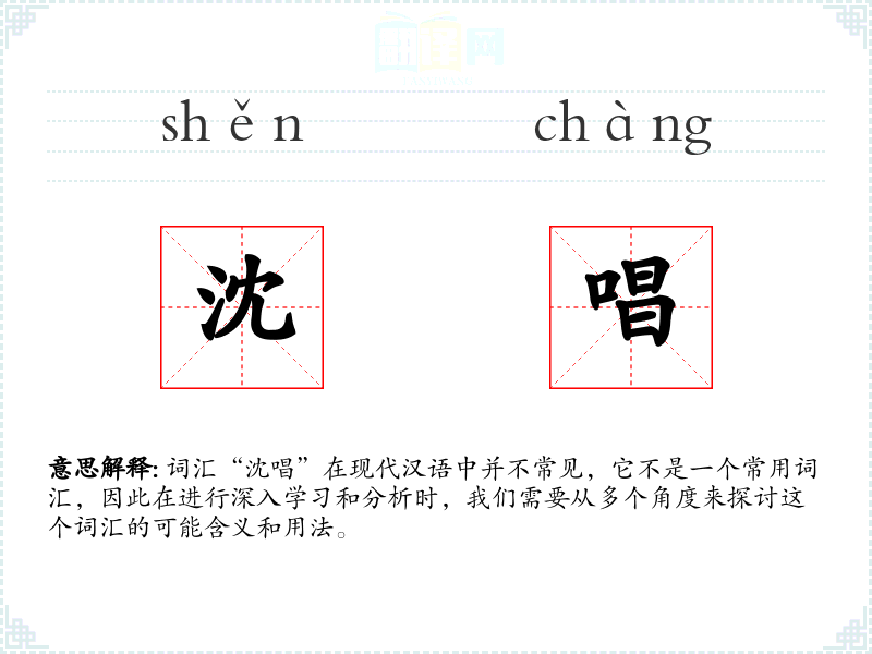 词汇“沈唱”在现代汉语中并不常见,它不是一个常用词汇,因此在进行深入学习和分析时,我们需要从多个角度来探讨这个词汇的可能含义和用法。