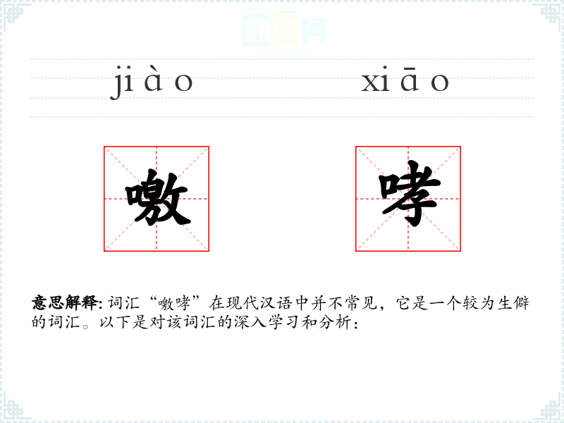 词汇“噭哮”在现代汉语中并不常见,它是一个较为生僻的词汇。以下是对该词汇的深入学习和分析:
