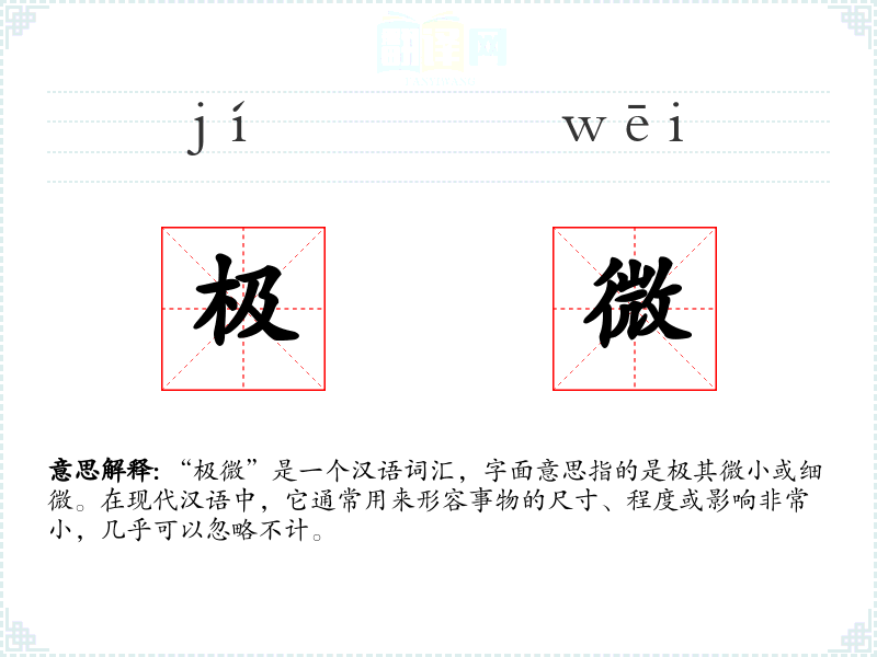 通过对“极微”的深入学习,我更加理解了它在描述细微事物时的精确性和情感表达上的细腻。在语言学习和表达中,掌握这样的词汇有助于提升表达的精确度和丰富性。