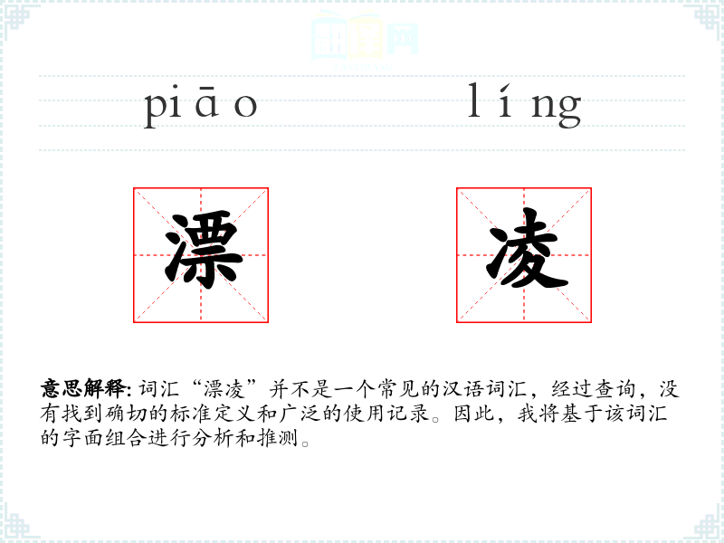 通过对“漂凌”的分析,我们可以看到,即使是非标准词汇,也可以通过字面组合和语境推测来理解其可能的意义和用法。在语言学习和表达中,这种分析能力有助于我们更好地理解和运用词汇。