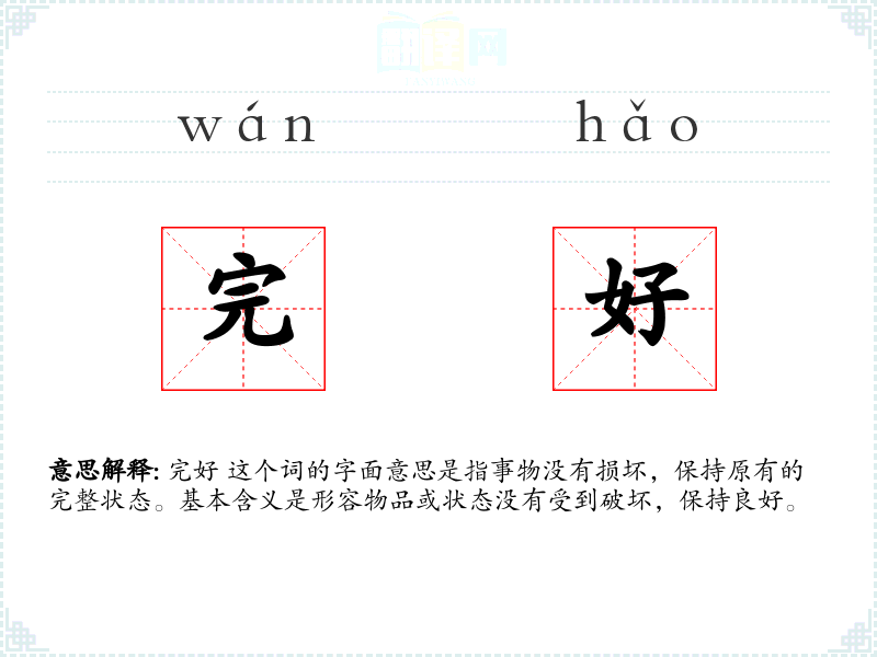 "完好"的意思解释、完好是什么意思由翻译网汉语词典查词提供。