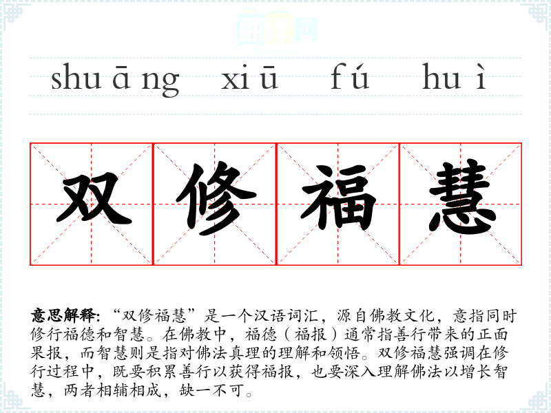 - 福慧双修:与“双修福慧”意思相同,只是词序不同。