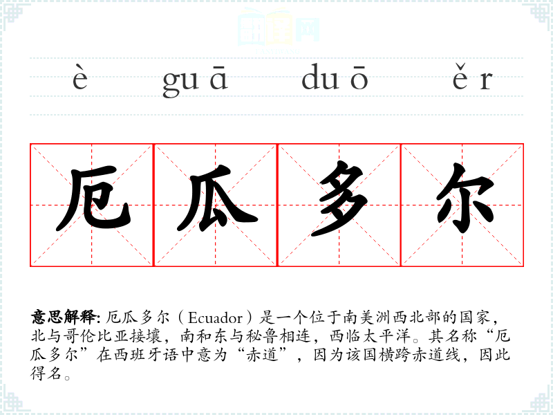 "厄瓜多尔"的意思解释、厄瓜多尔是什么意思由翻译网汉语词典查词提供。