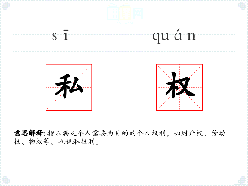 指以满足个人需要为目的的个人权利,如财产权、劳动权、物权等。也说私权利。